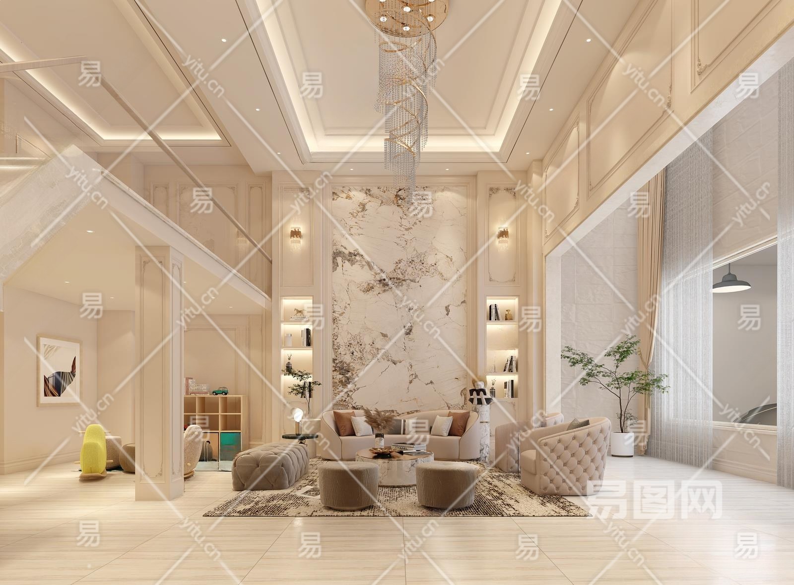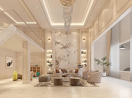 简欧别墅客厅3D模型下载