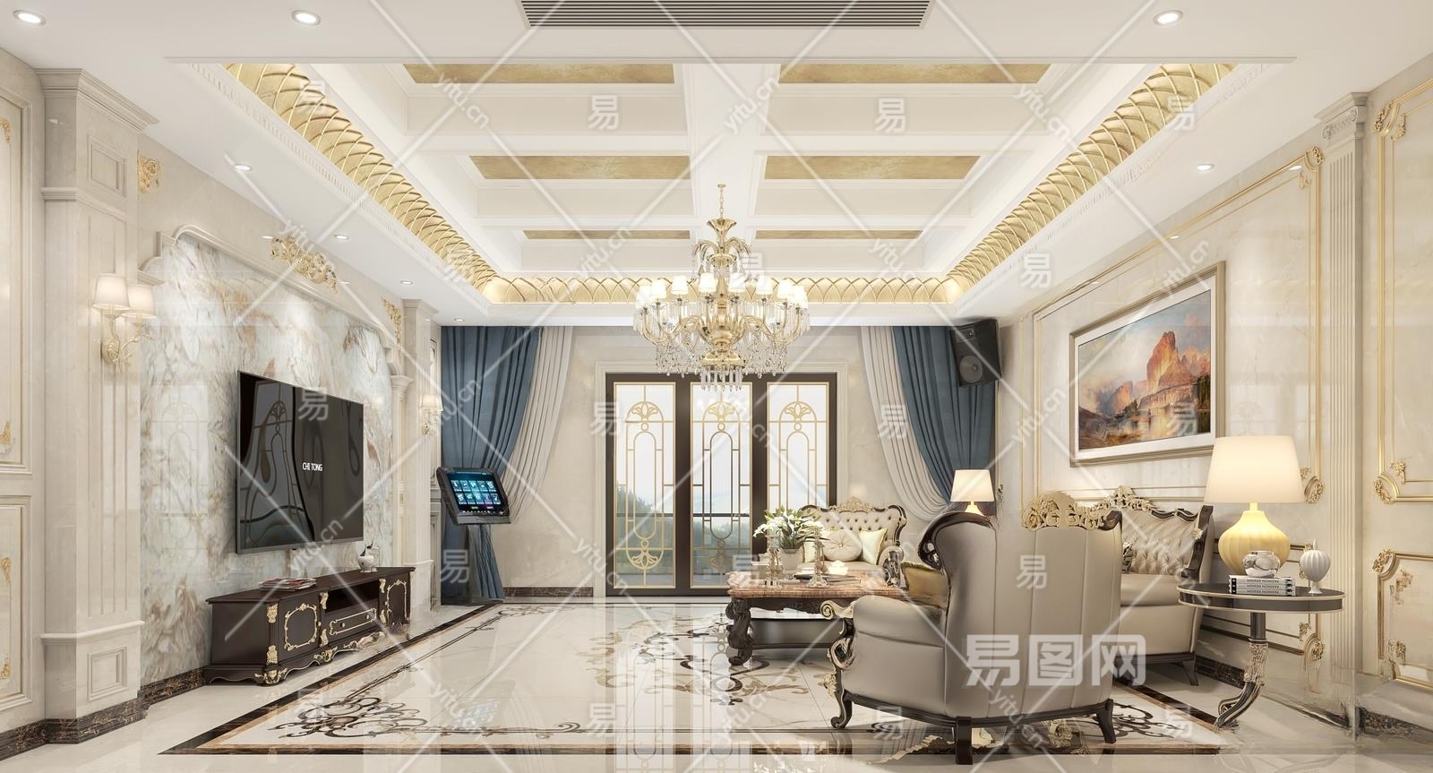 欧式古典家居客厅3D模型下载