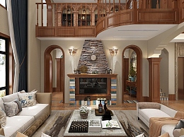 美式别墅客厅3D模型下载