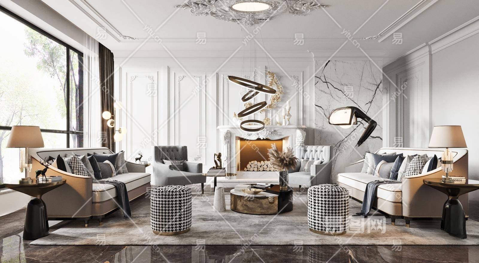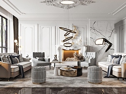 美式家居客厅3D模型下载