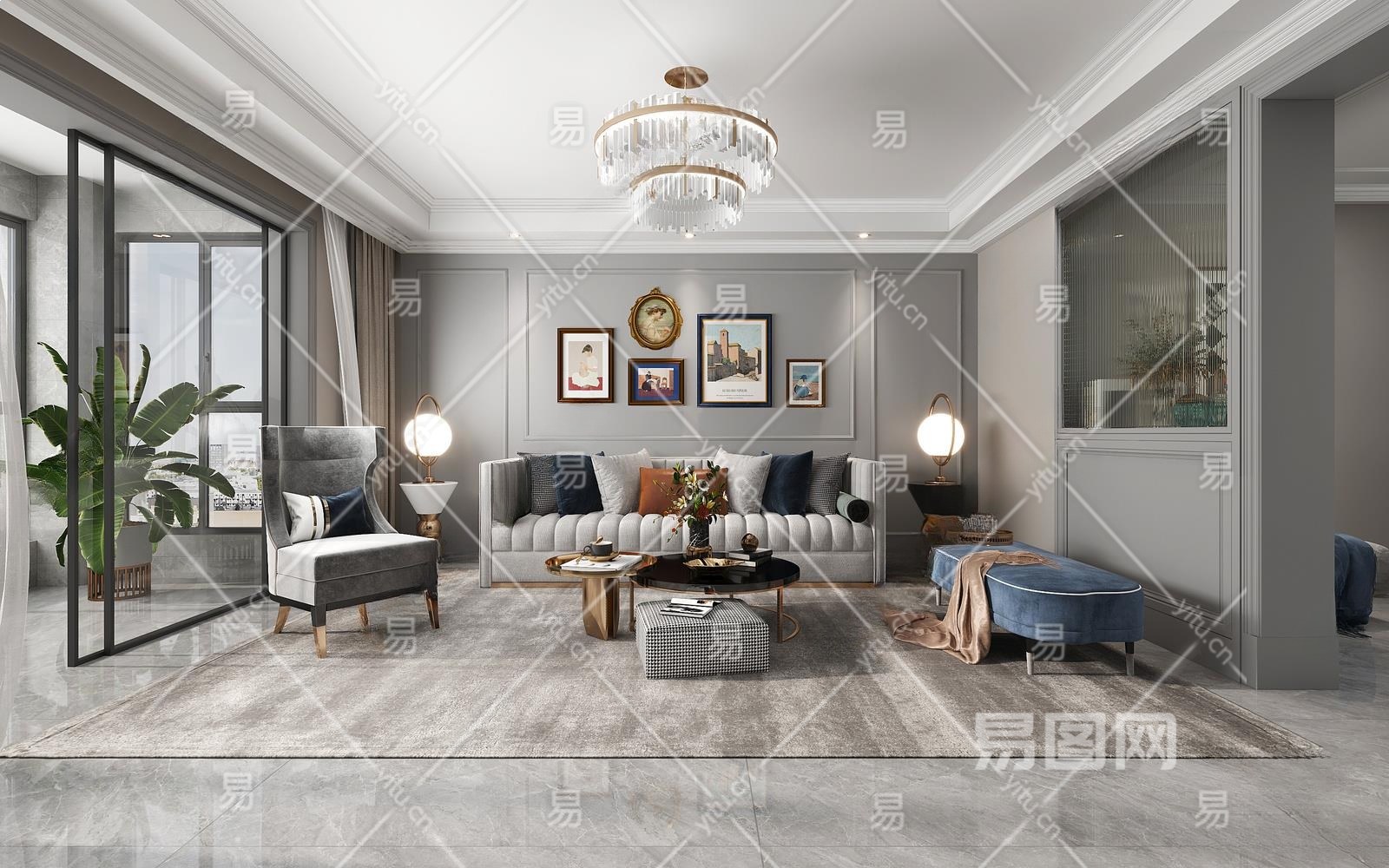 美式家居客厅3D模型下载