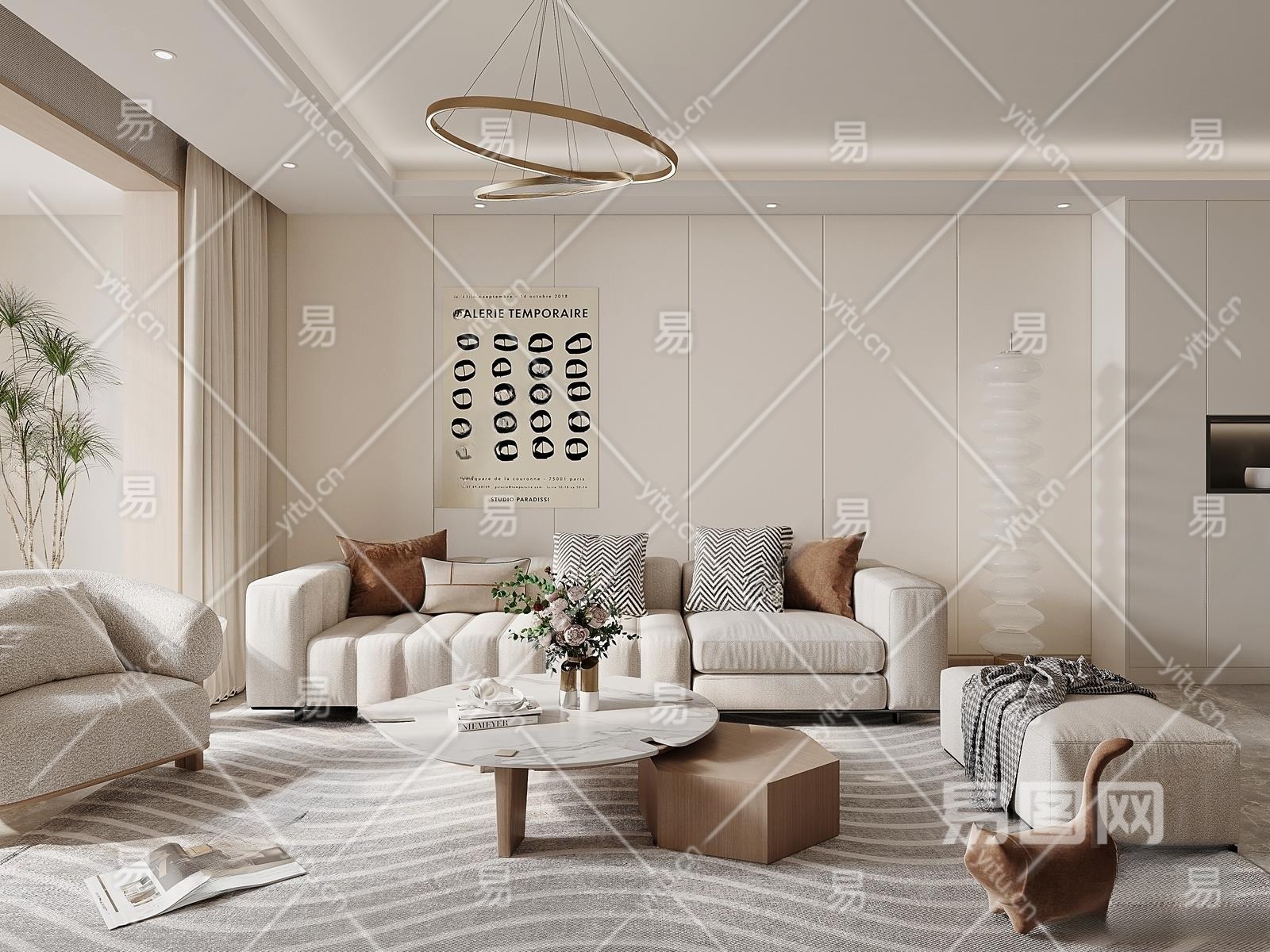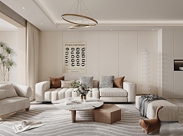 现代奶油风客厅3D模型下载
