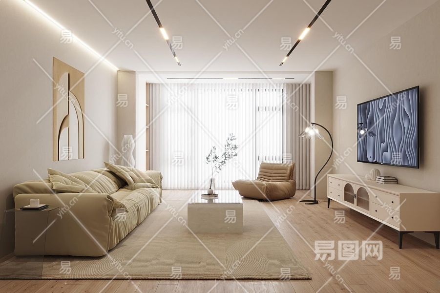 现代奶油风家居客厅3D模型下载