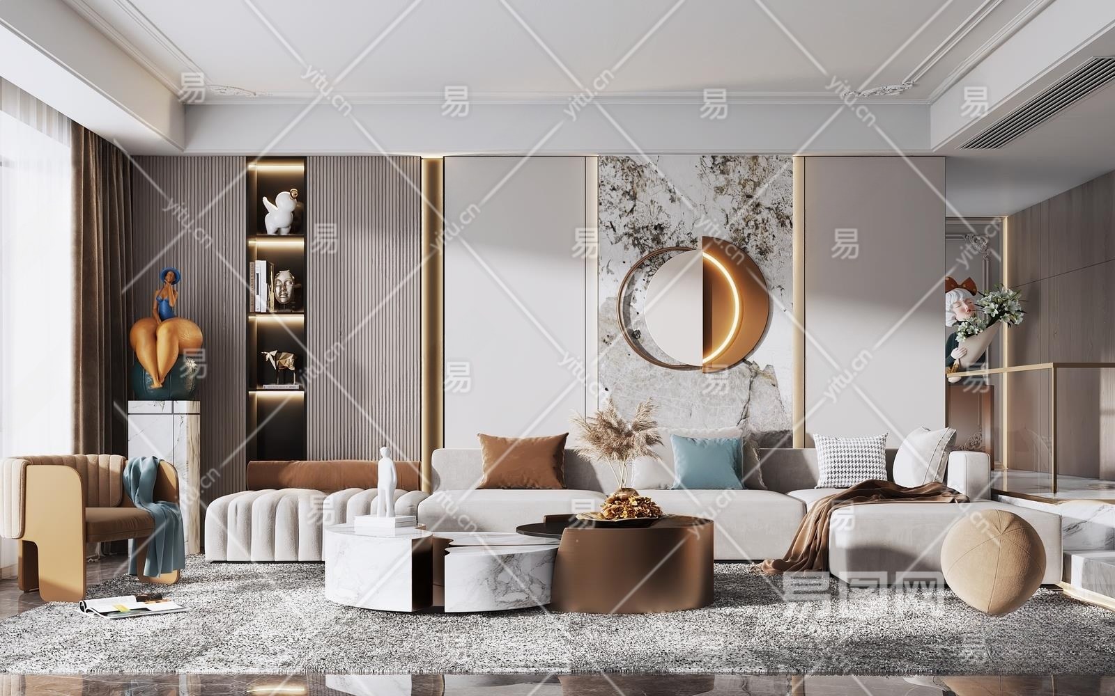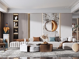 现代轻奢客厅3D模型下载
