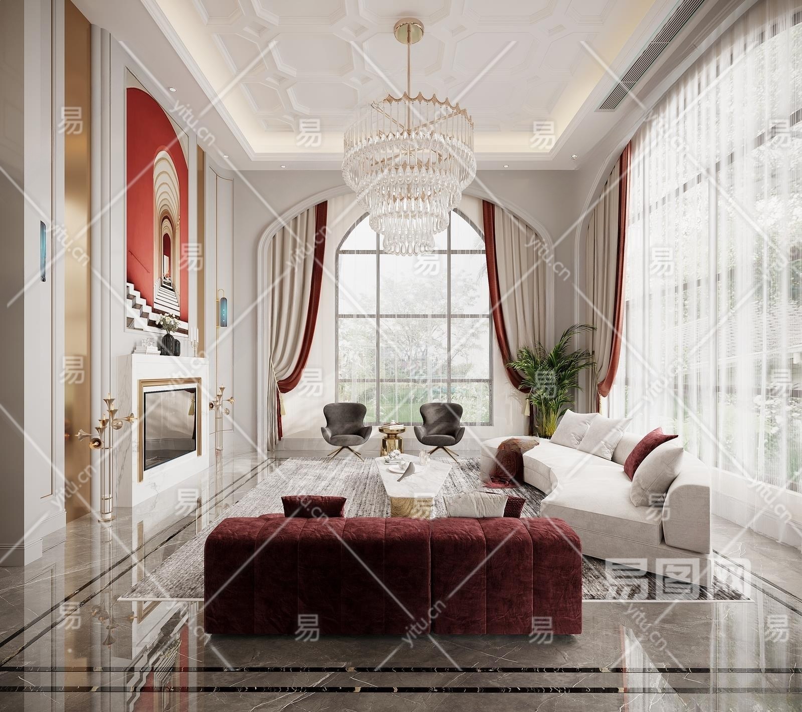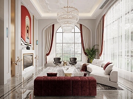 法式轻奢别墅客厅3D模型下载