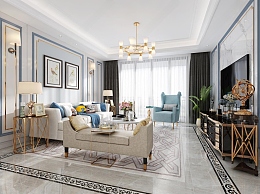 美式轻奢客厅3D模型下载