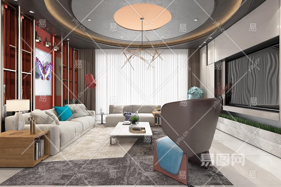 现代轻奢客厅3D模型下载