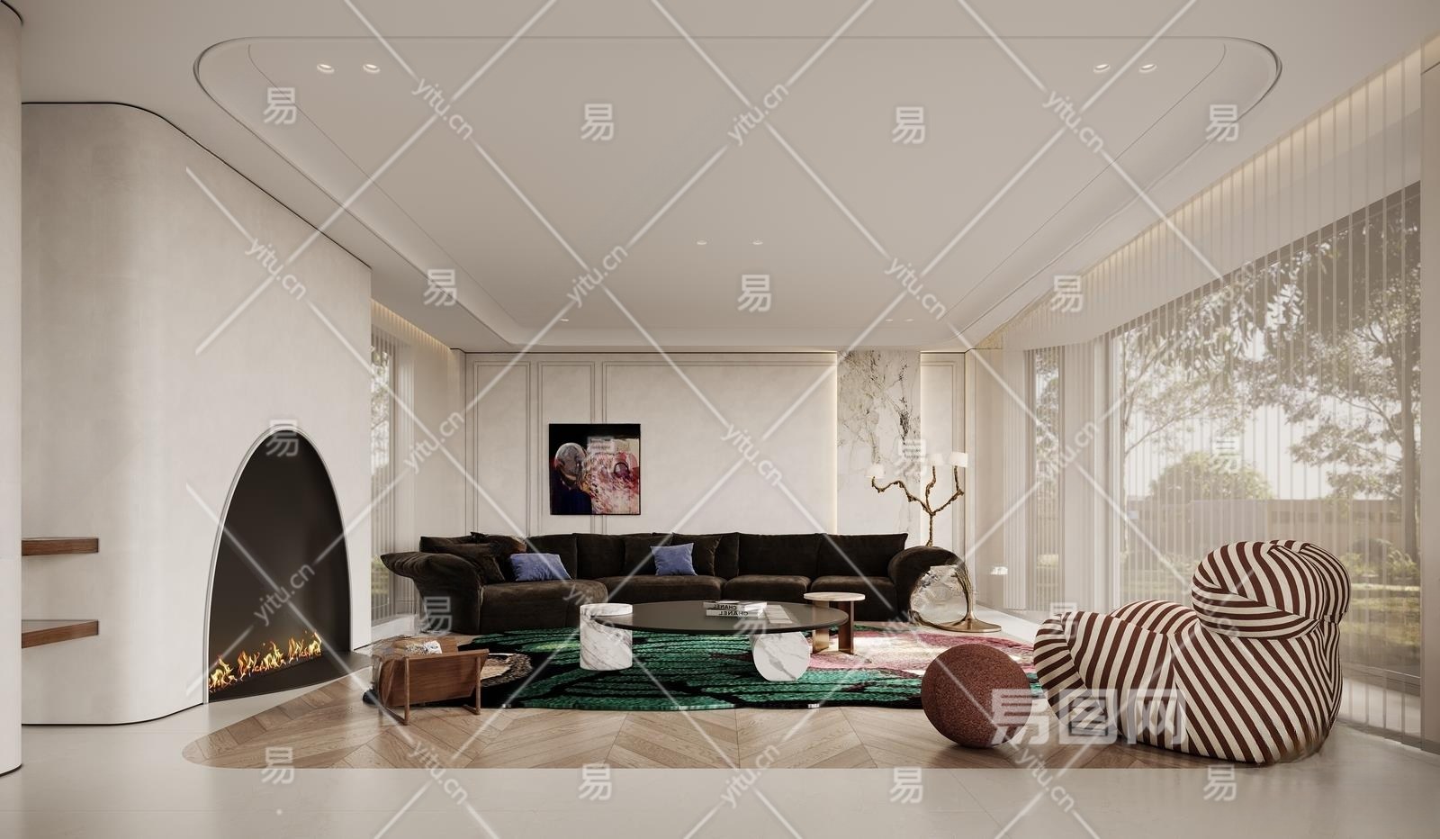 现代客厅3D模型下载