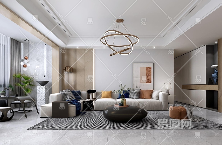 现代家居客厅3D模型下载