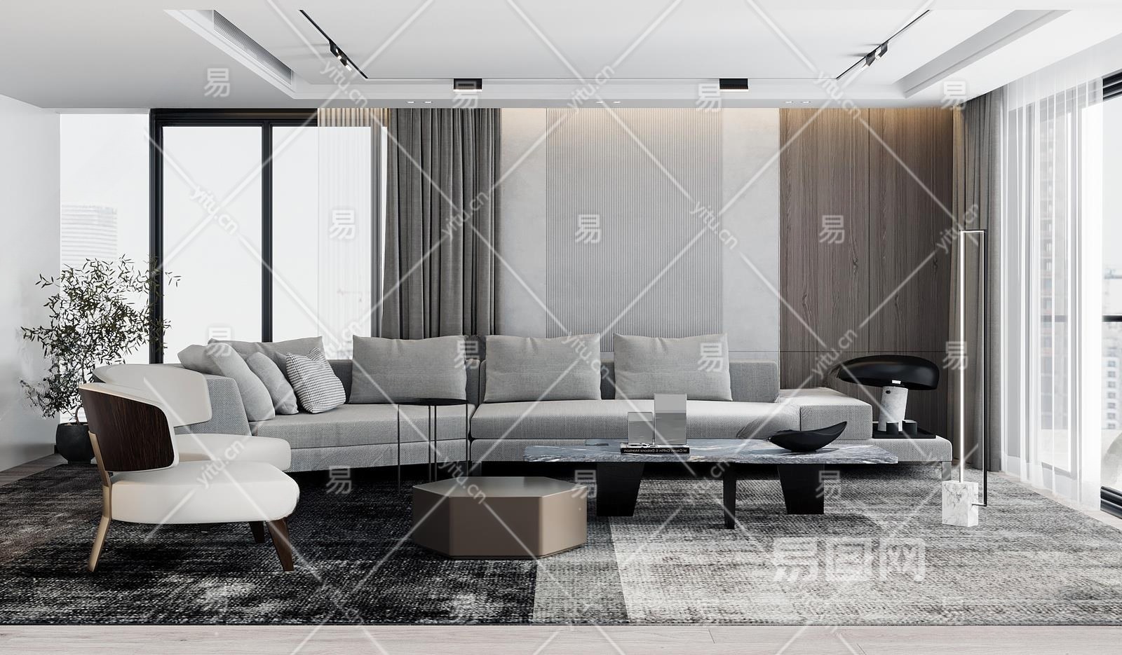现代客厅3D模型下载