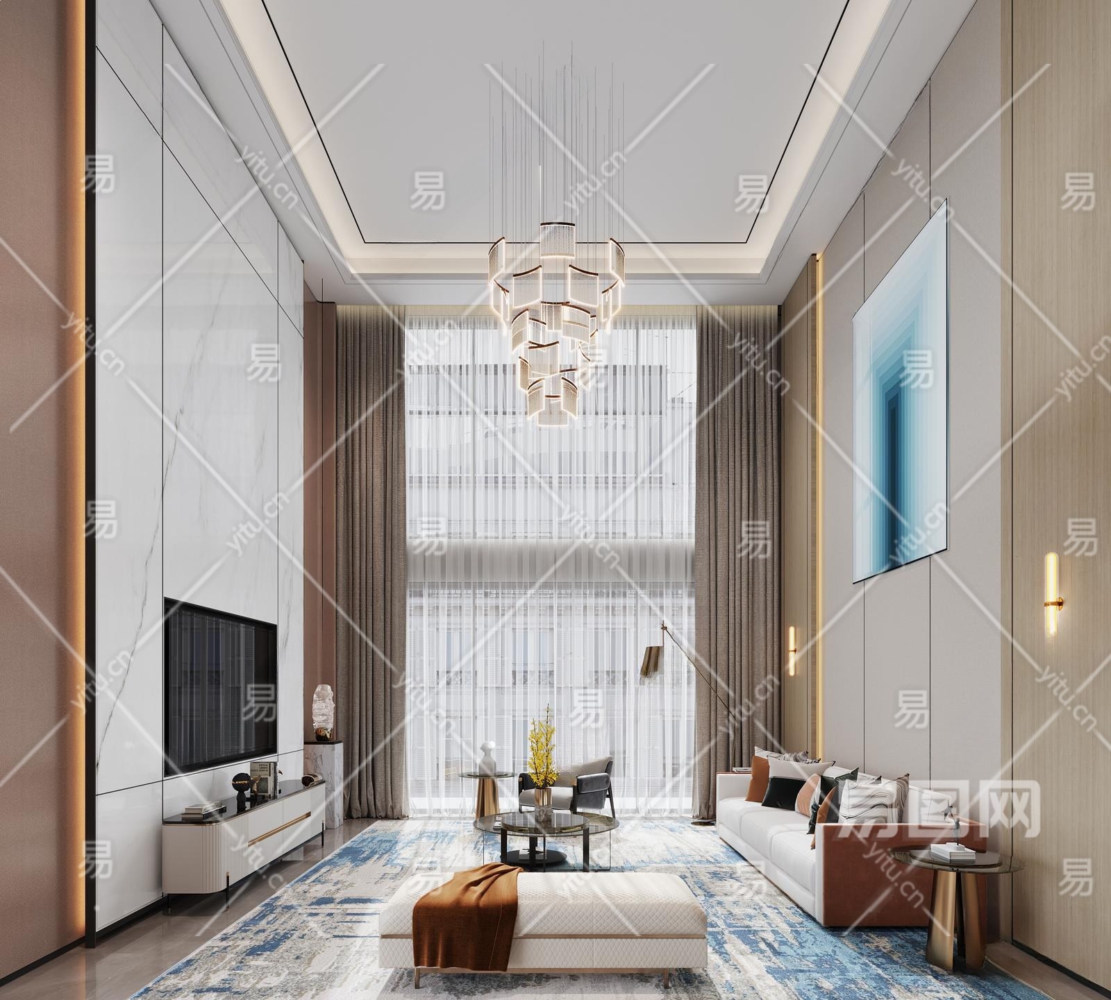 现代别墅客厅3D模型下载