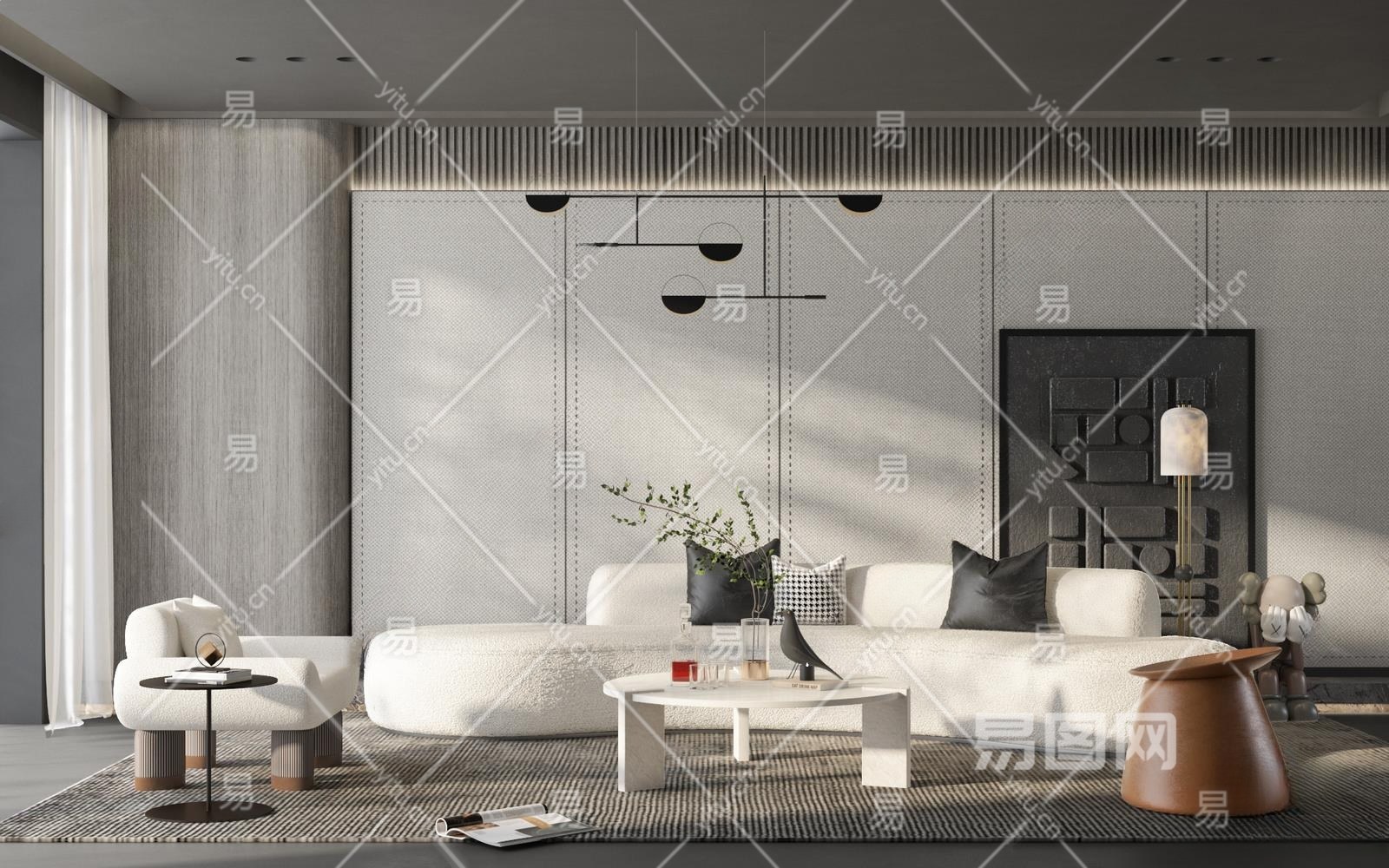 现代客厅3D模型下载