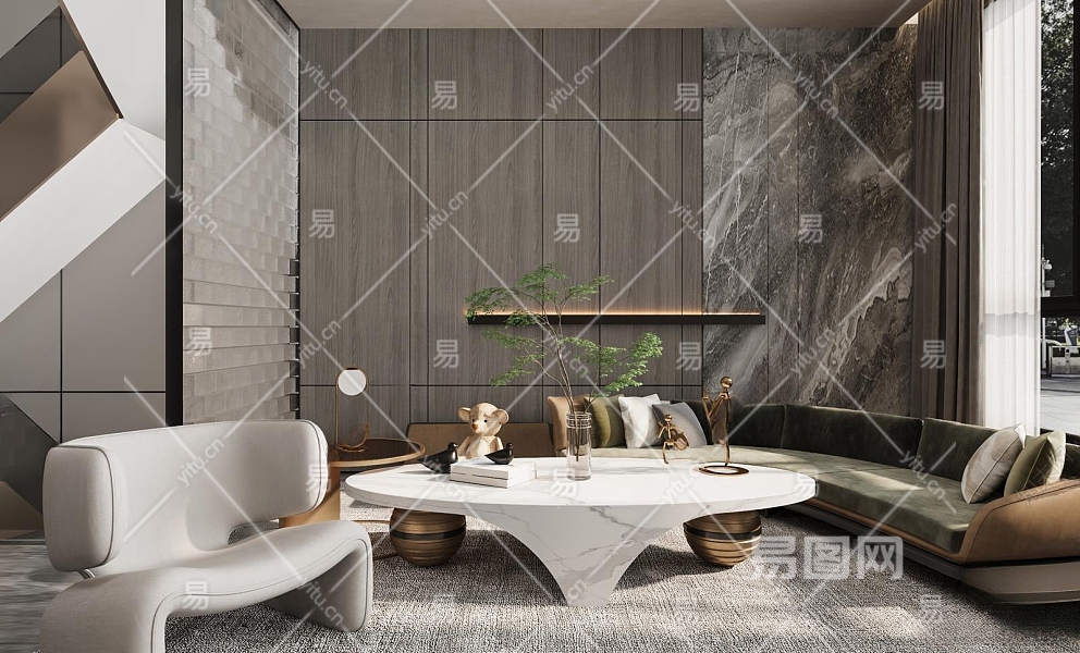 现代别墅客厅3D模型下载