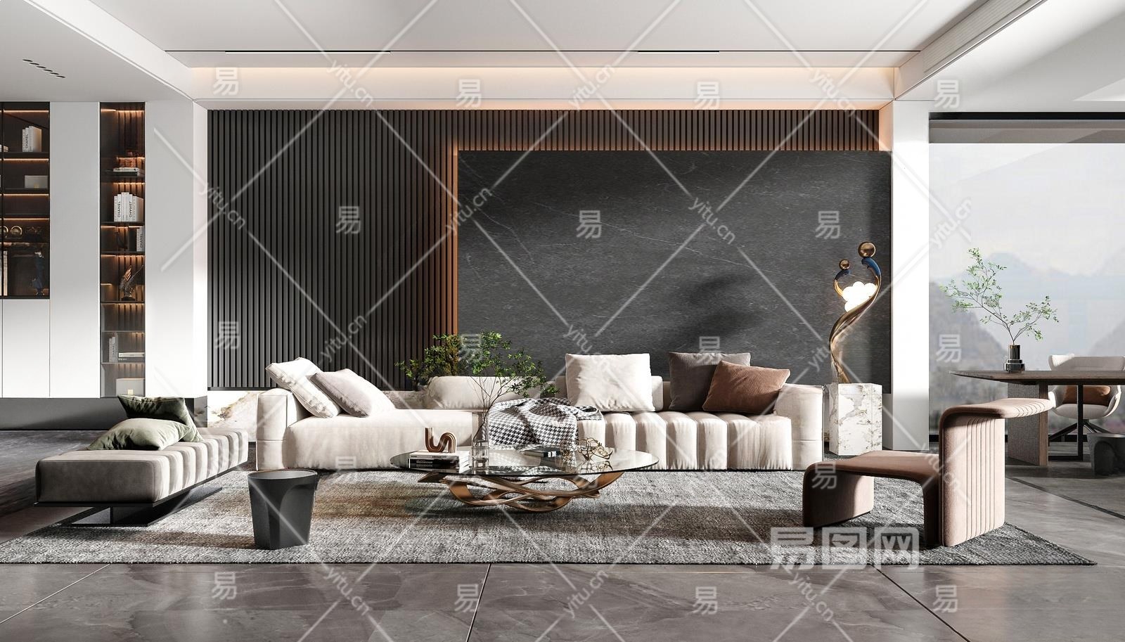 现代客厅3D模型下载