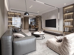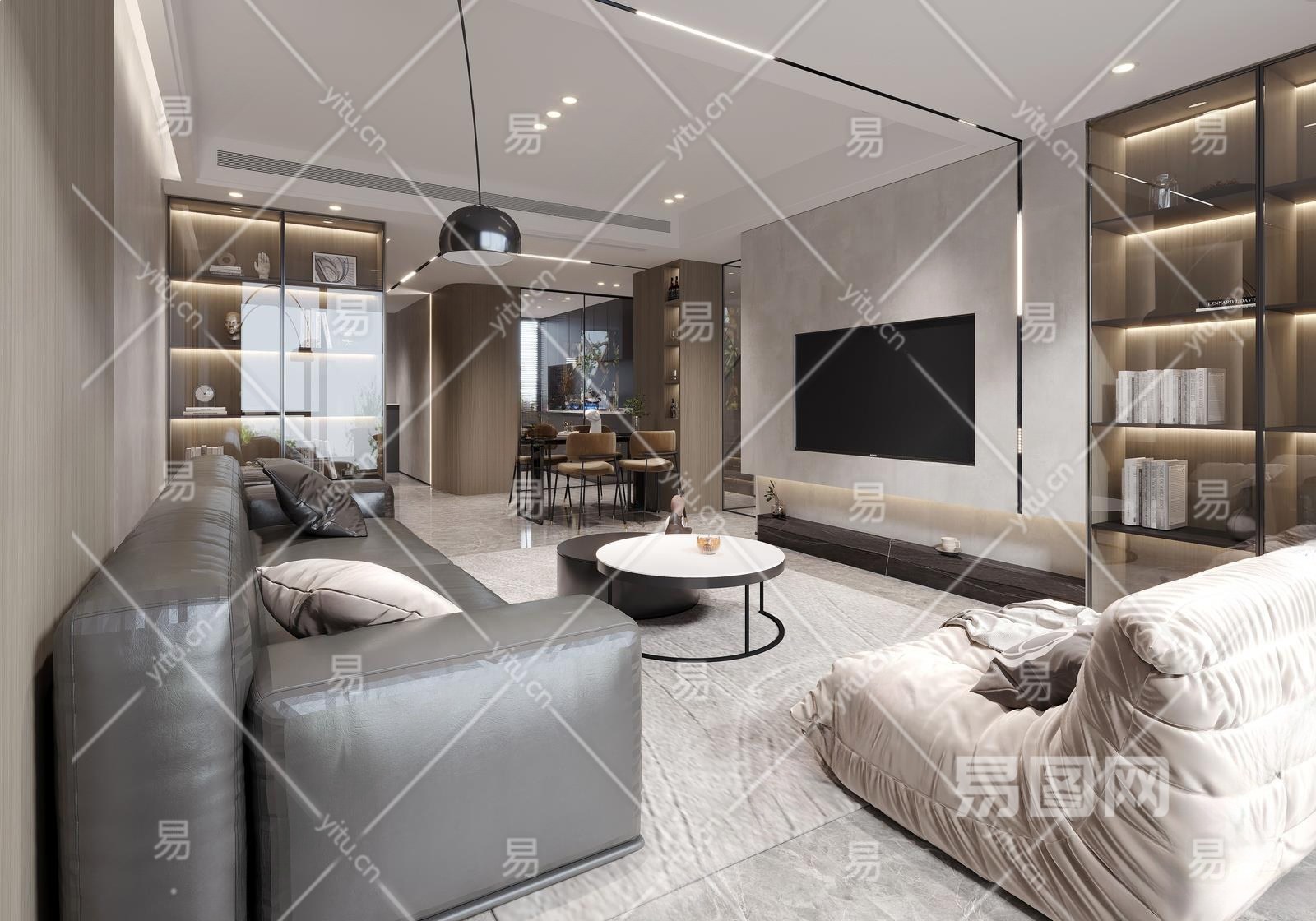现代黑白灰别墅客厅3D模型下载