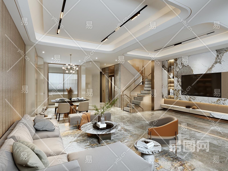 现代别墅客厅3D模型下载