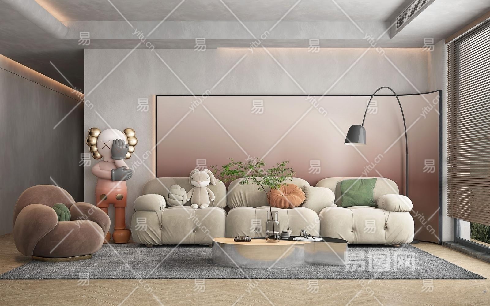 现代家居客厅3D模型下载
