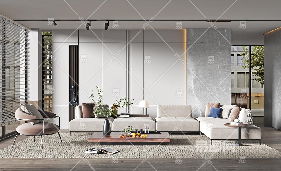 现代家居客厅3D模型下载