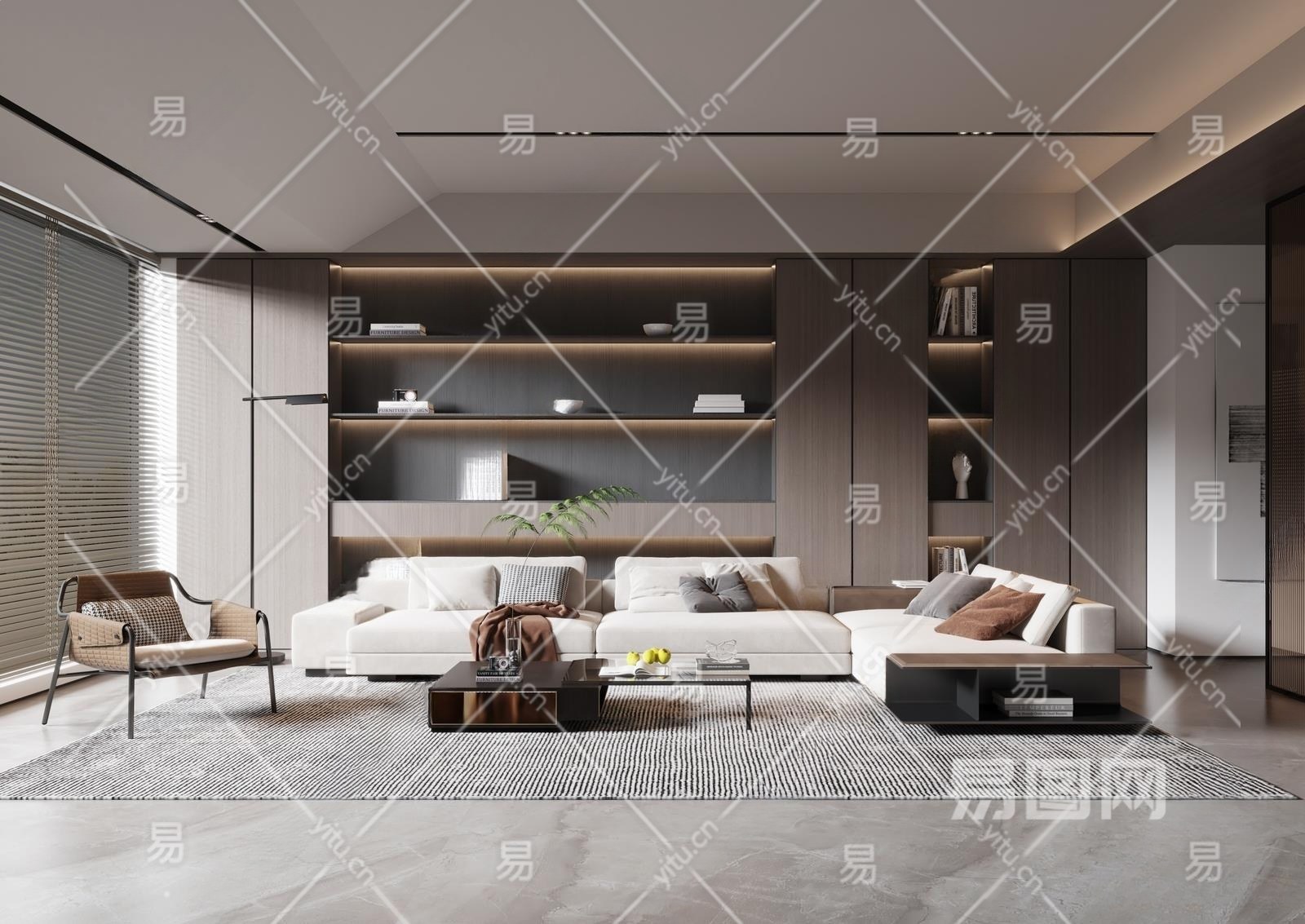 现代客厅3D模型下载