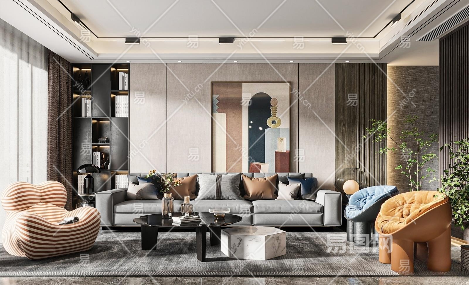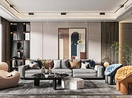 现代家居客厅3D模型下载