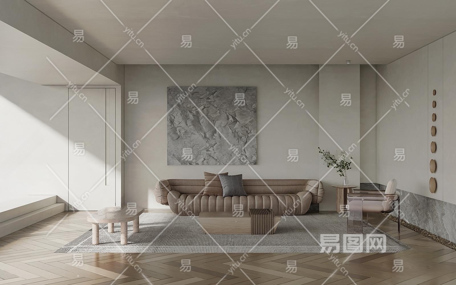 现代客厅3D模型下载