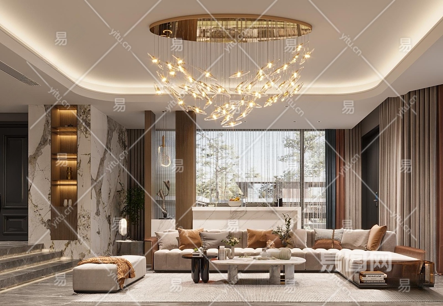 现代别墅客厅3D模型下载