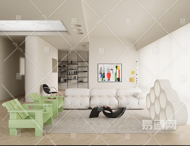 现代极简客厅3D模型下载