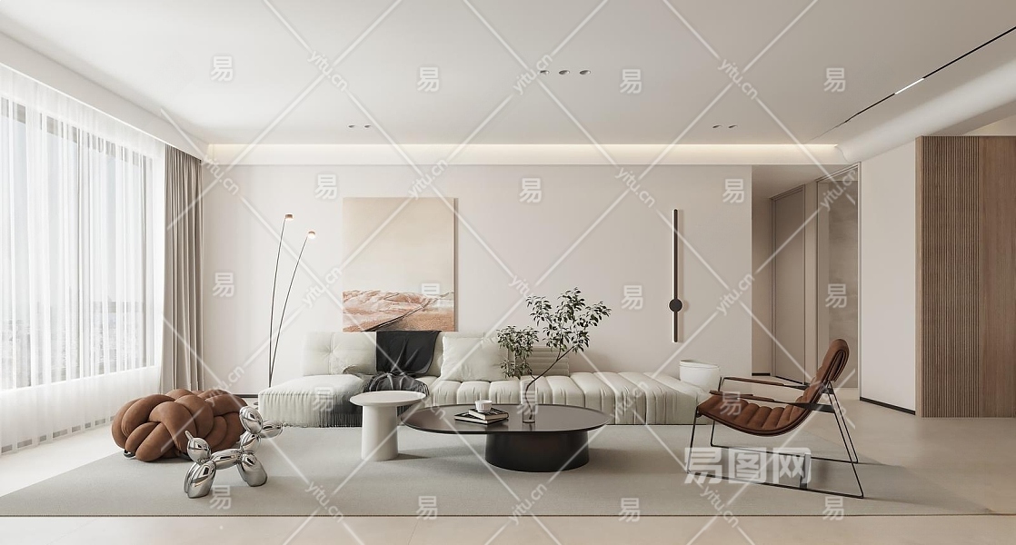 现代客厅3D模型下载