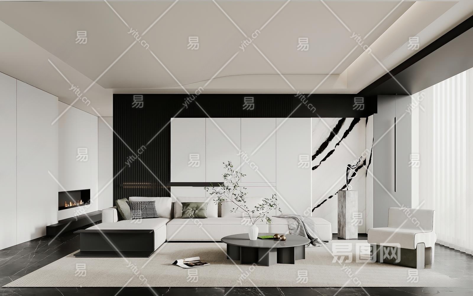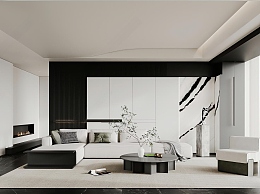 现代客厅3D模型下载