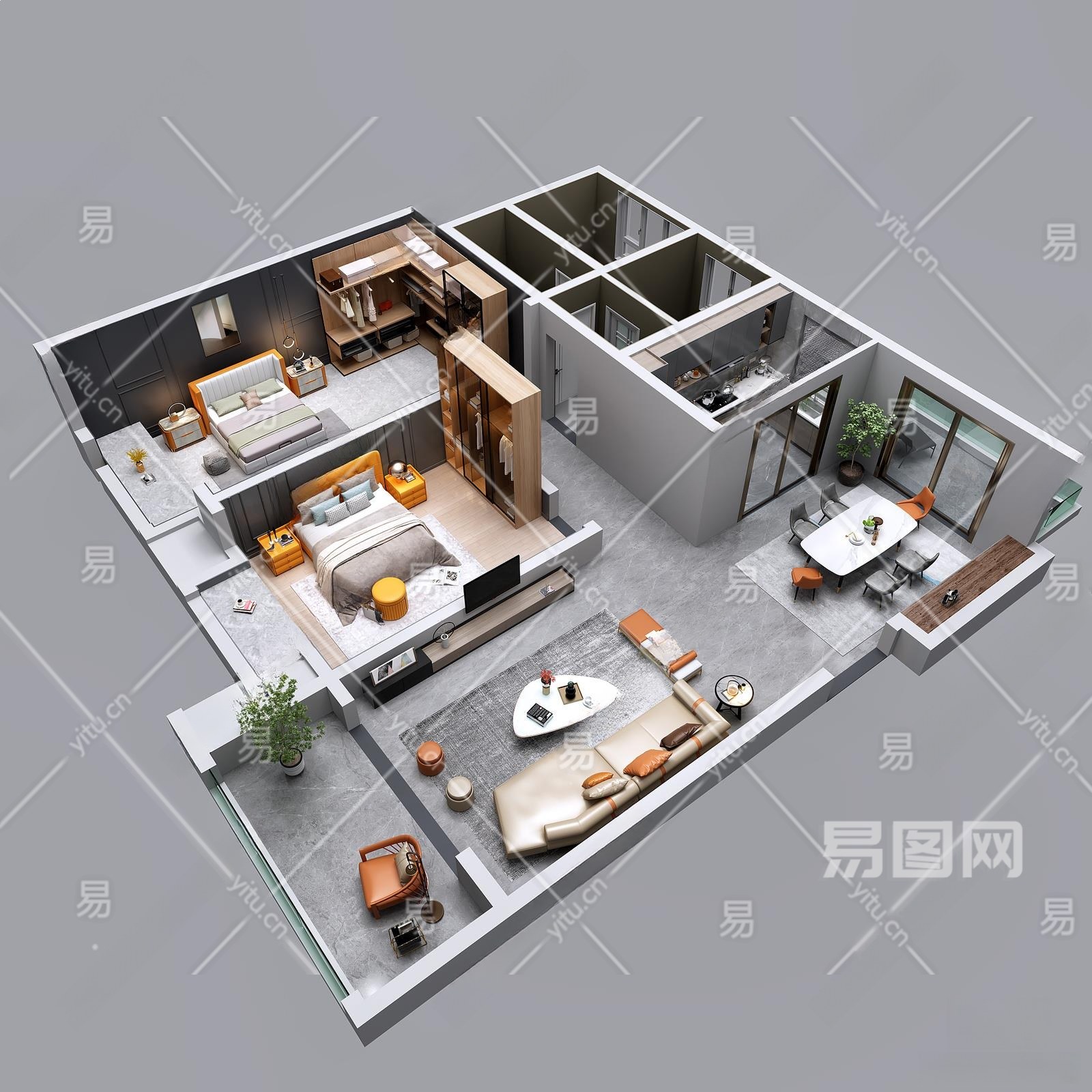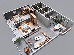 现代家居客厅3D模型下载