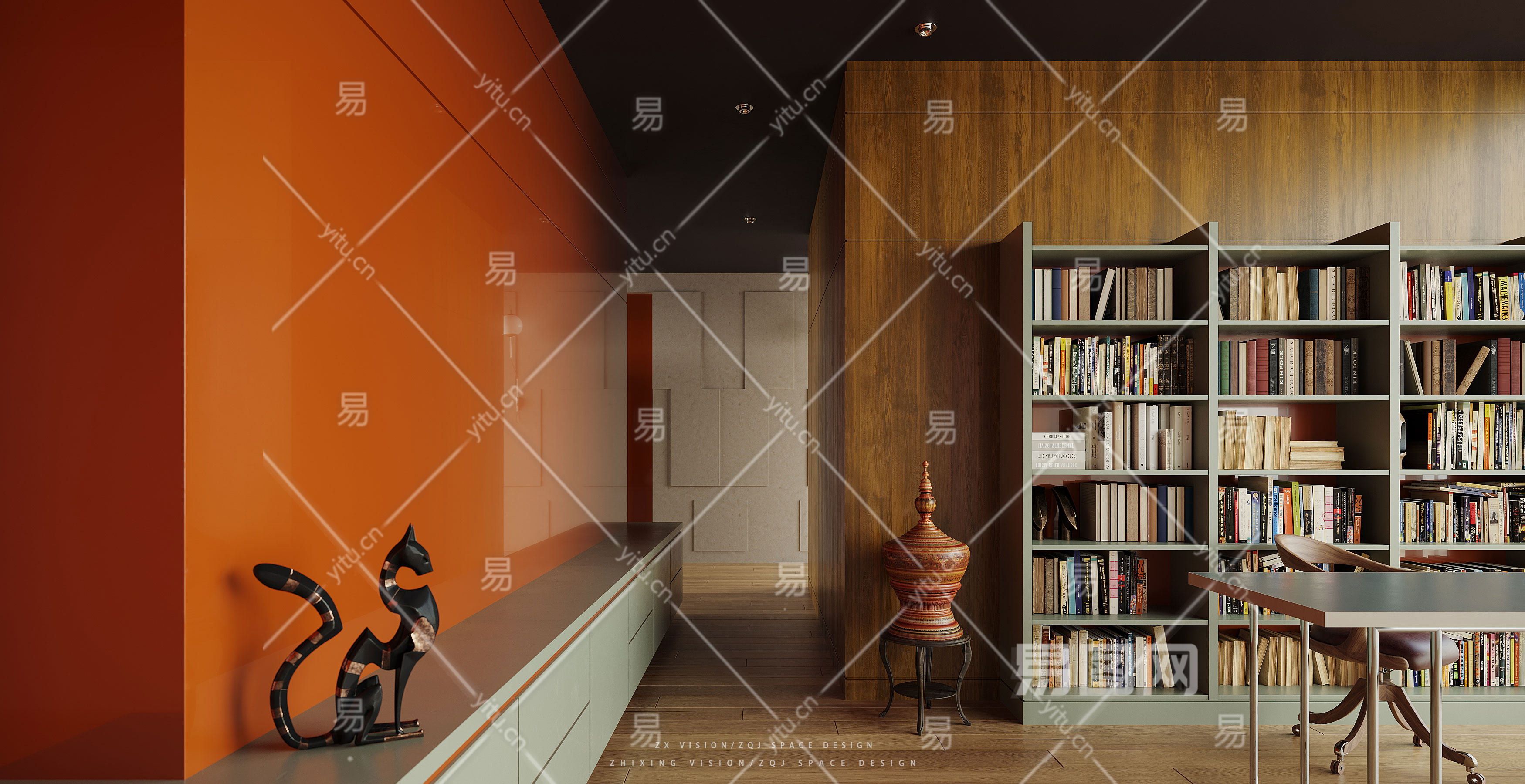 橙色书房室内展示