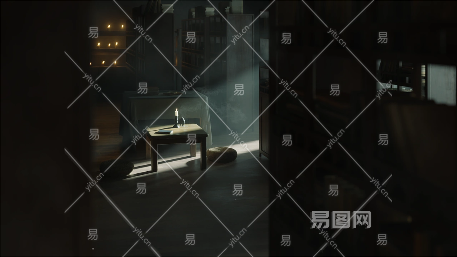 当前的位置:首页 > 3D模型 > 家装空间 > 书房 > 中式禅意中式书房昏暗光影