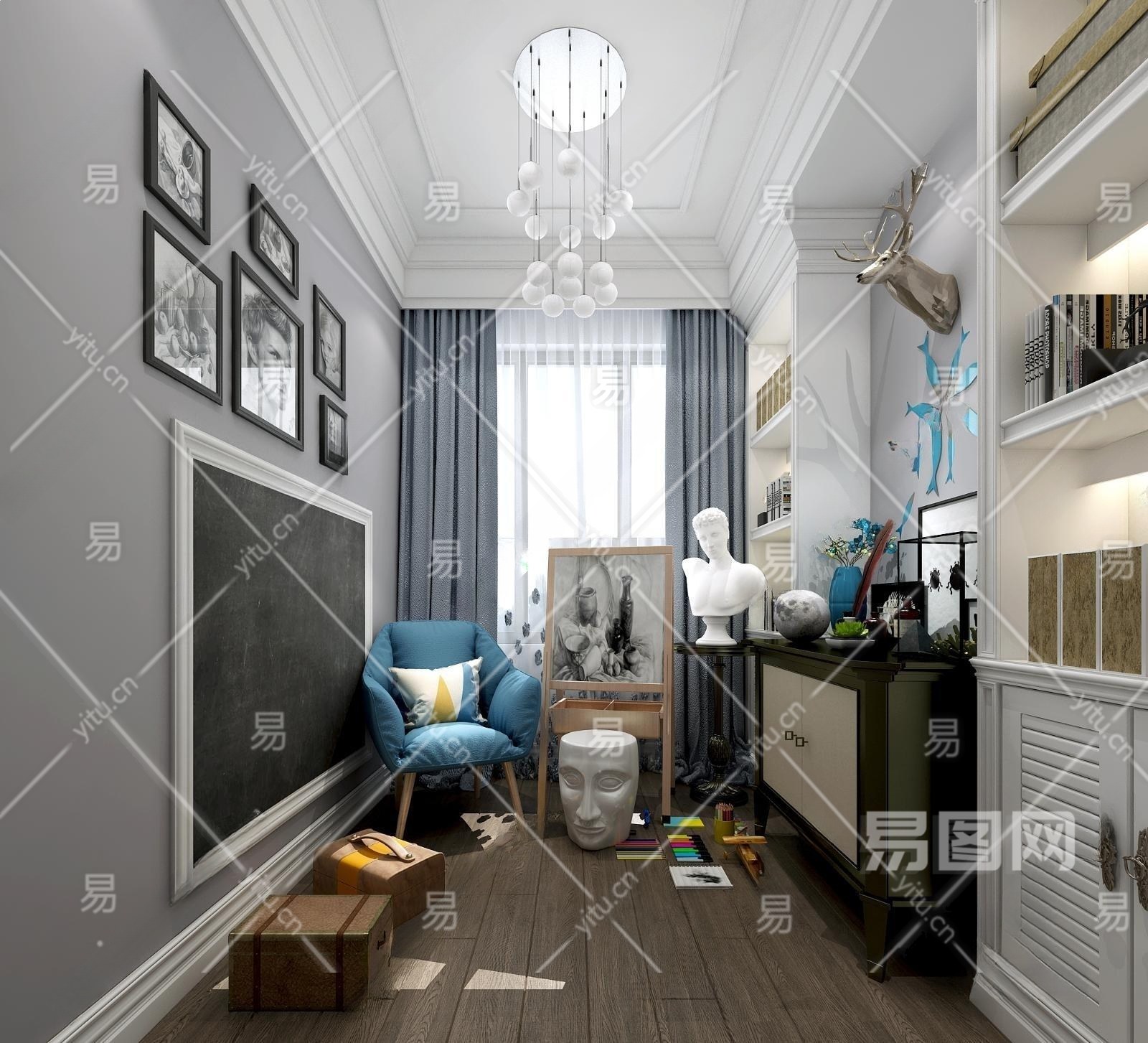 北欧书房画室3D模型下载