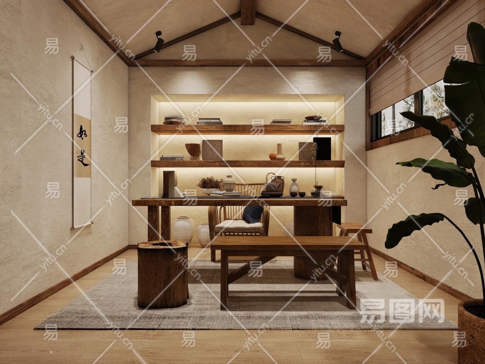 侘寂书房3D模型下载