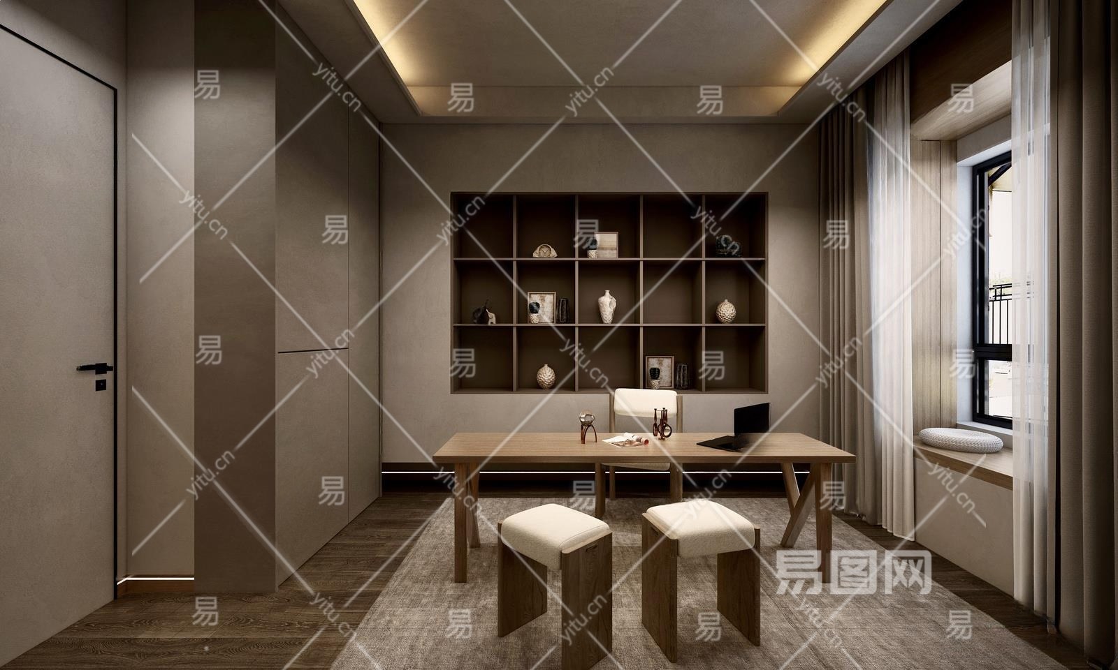 侘寂家居书房3D模型下载