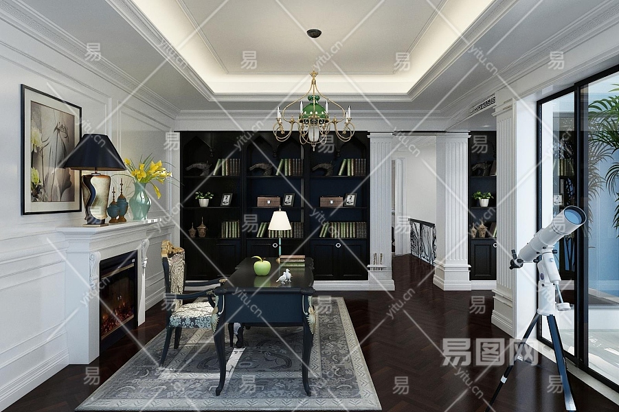 法式书房3D模型下载