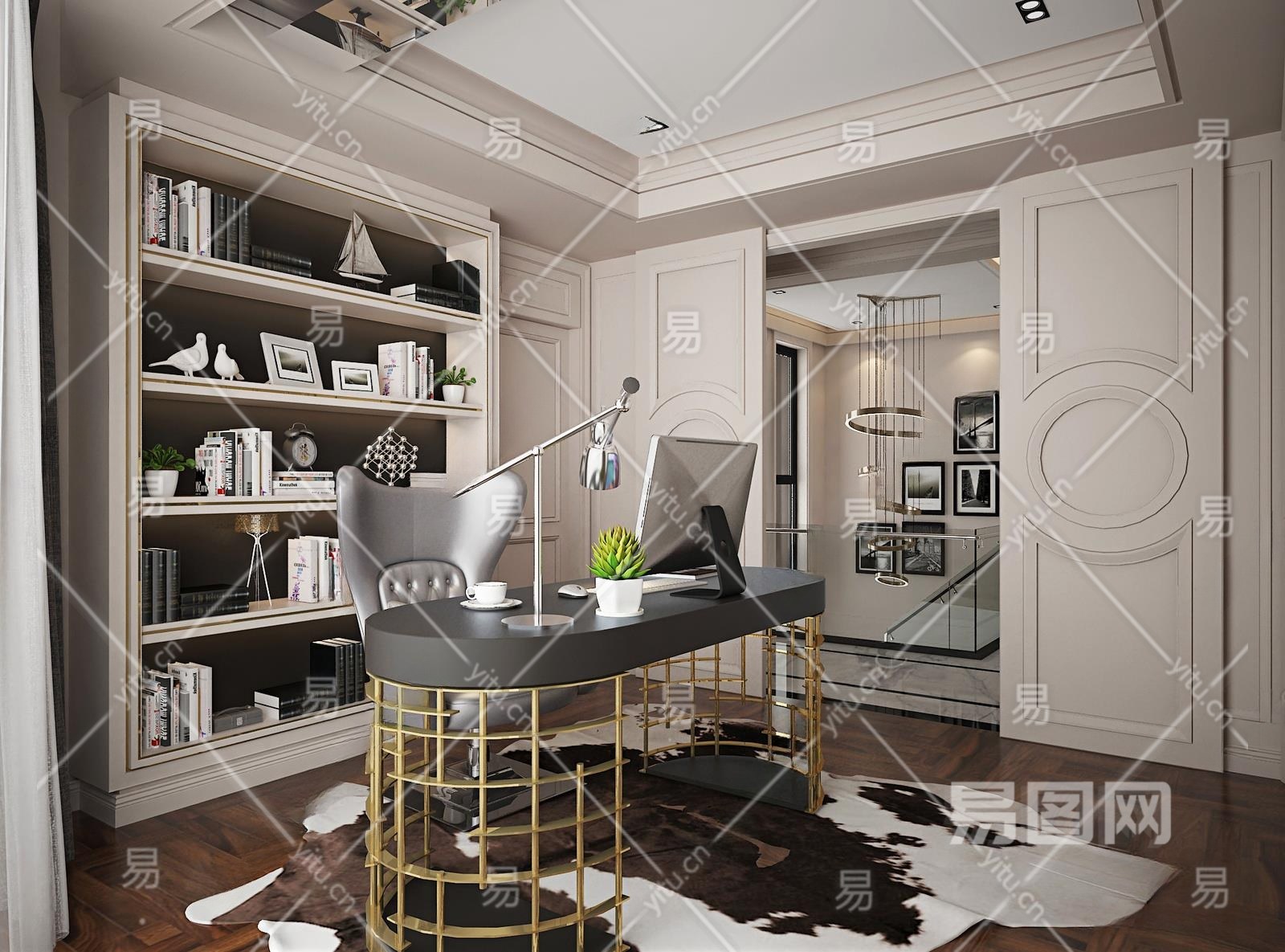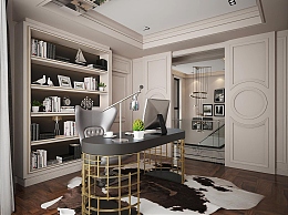 美式别墅书房3D模型下载