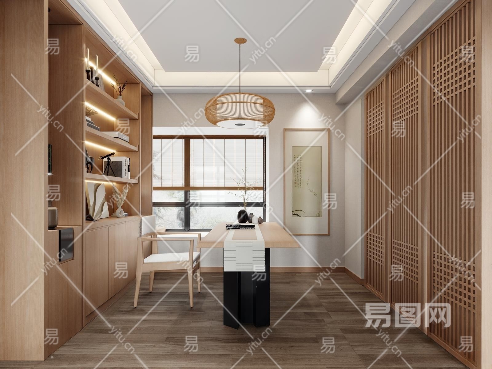 日式禅意书房3D模型下载