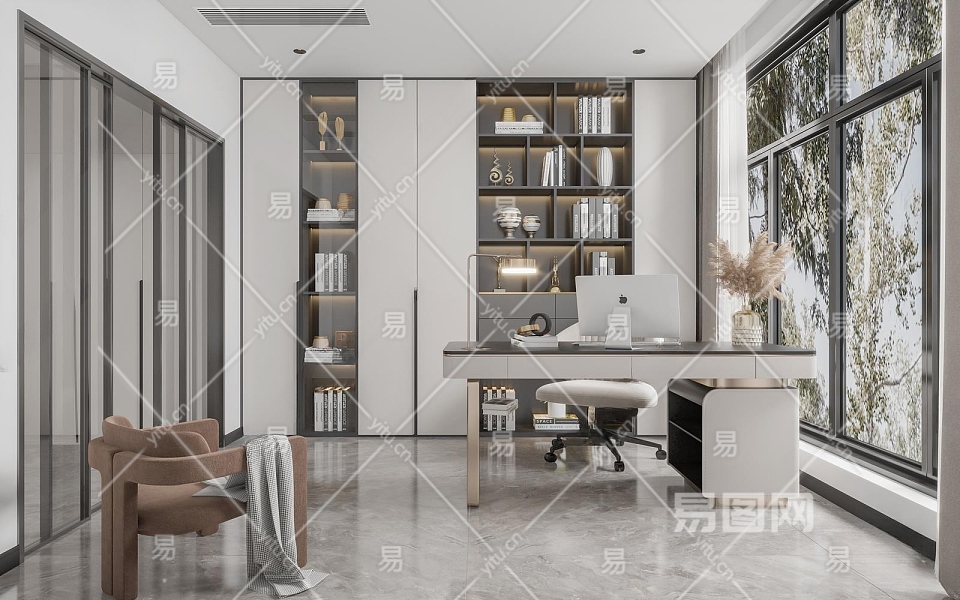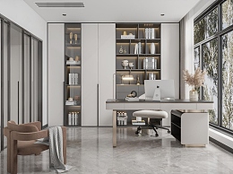 现代书房3D模型下载