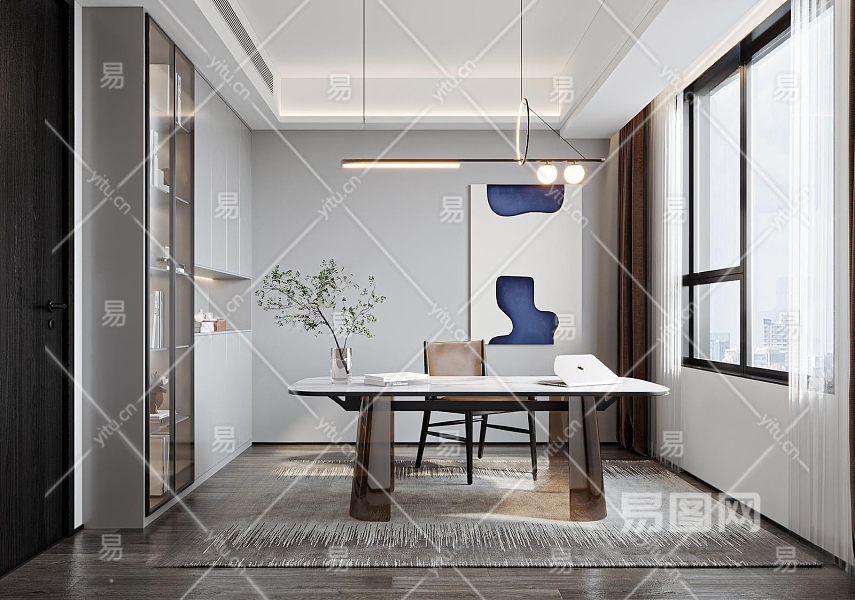 现代书房3D模型下载