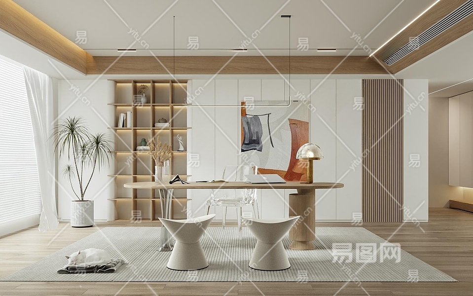现代书房3D模型下载