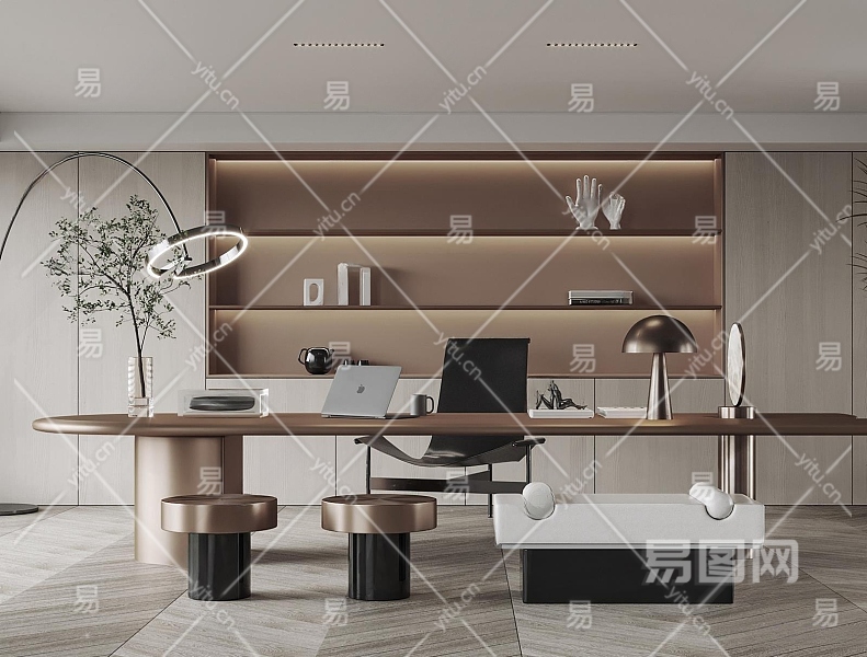 现代书房3D模型下载