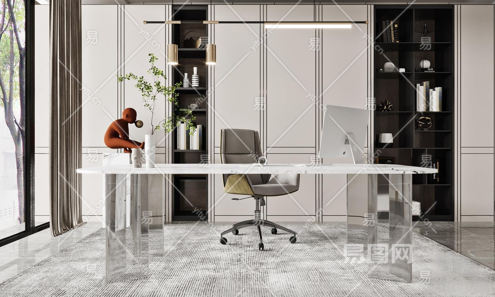 现代家居书房3D模型下载