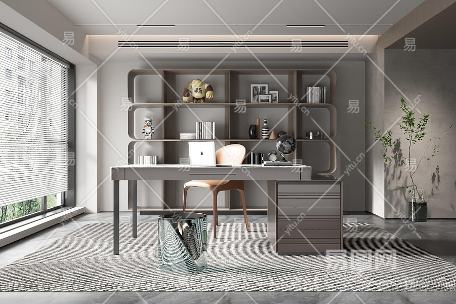 现代书房3D模型下载