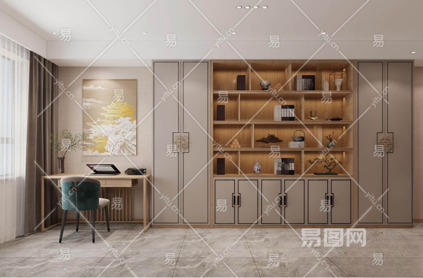 新中式书房3D模型下载