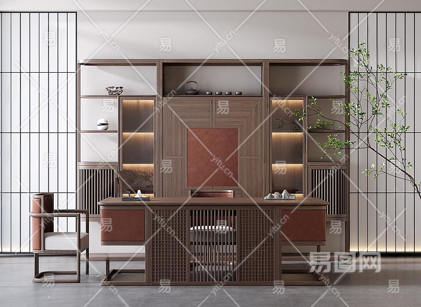 新中式书房3D模型下载