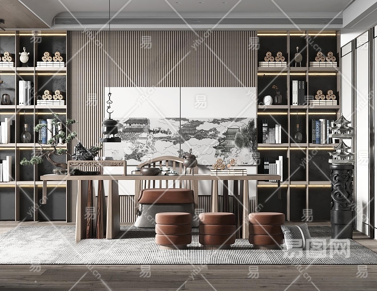 当前的位置:首页 > 3D模型 > 家装空间 > 书房 > 新中式家居书房3D模型下载