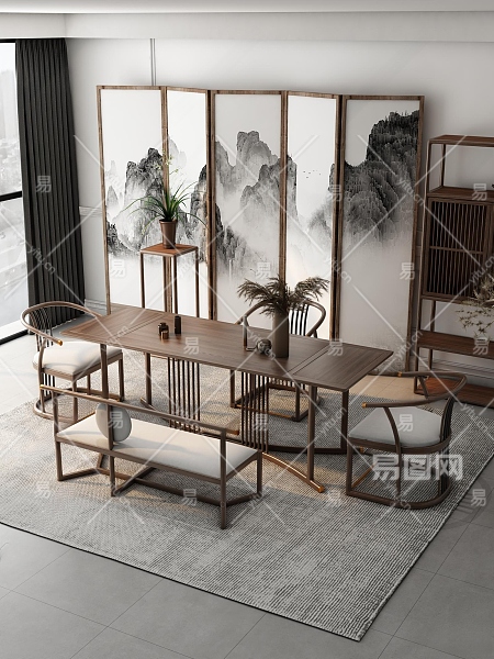新中式书房3D模型下载