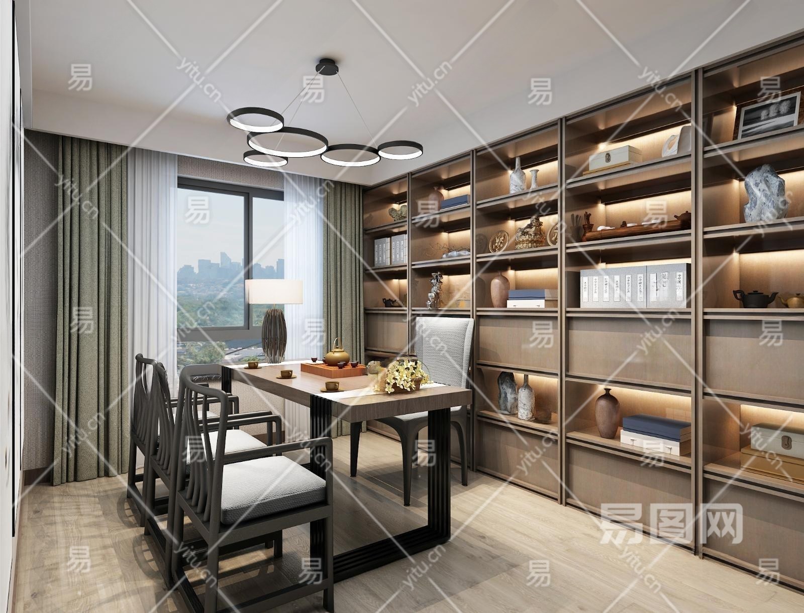 新中式书房3D模型下载