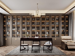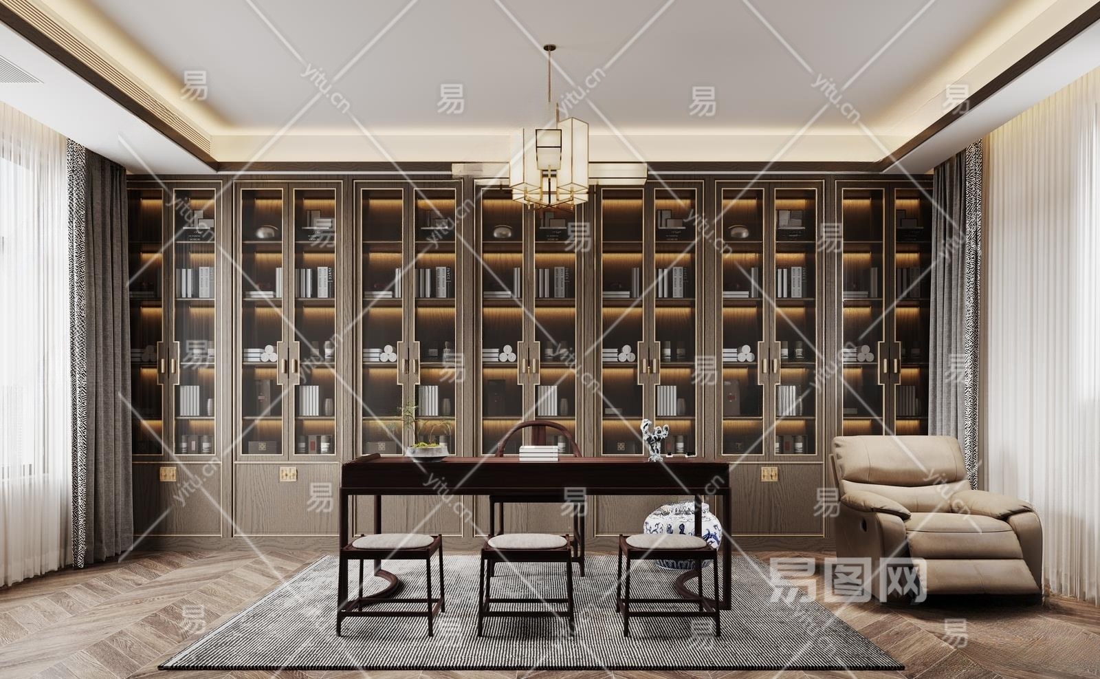 新中式书房3D模型下载